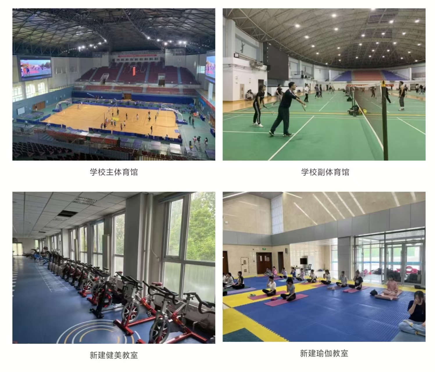 体育教学部下辖体育场馆中心保证体育教学、训练和师生课余体育活动正常进行,场馆总面积23127平方米,生均1.08平方米,室外体育场地总面积61721平方米,生均2.88平方米。场馆中心为师生创造优良的教学环境,2021年拓展了武术、健身、瑜伽三个教室,2024年新建了匹克球场地,保证了公共体育课程项目的多样性。