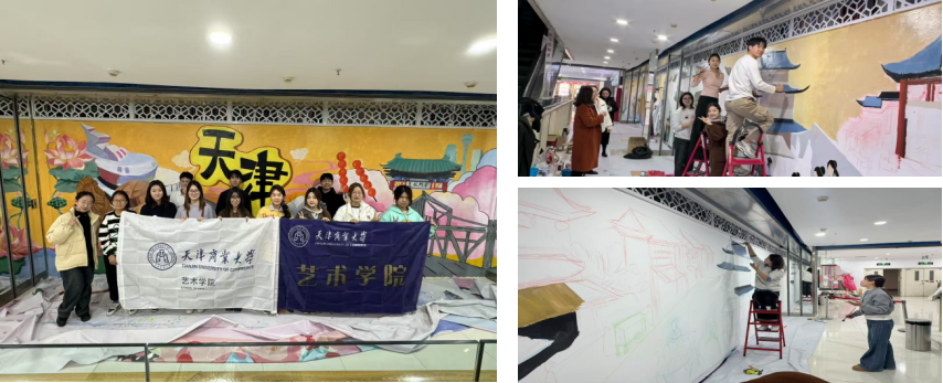 建立校地共建“美育服务矩阵”。与水上公园联合开展“低碳环保・艺起行动”主题团日活动,为园区绘制低碳环保系列井盖,获“津云”等媒体报道;为百年劝业场提供“老字号振兴”主题墙绘3次,助推老字号企业发展。