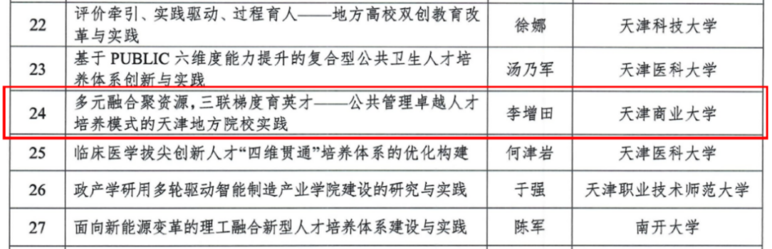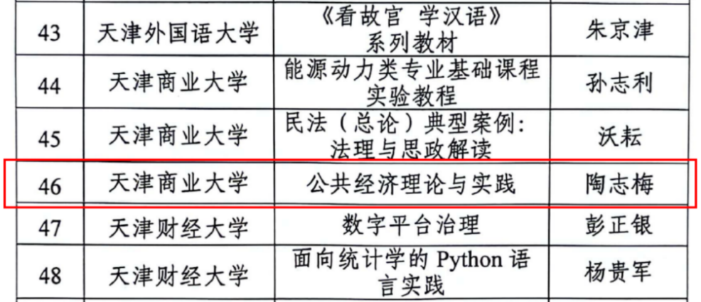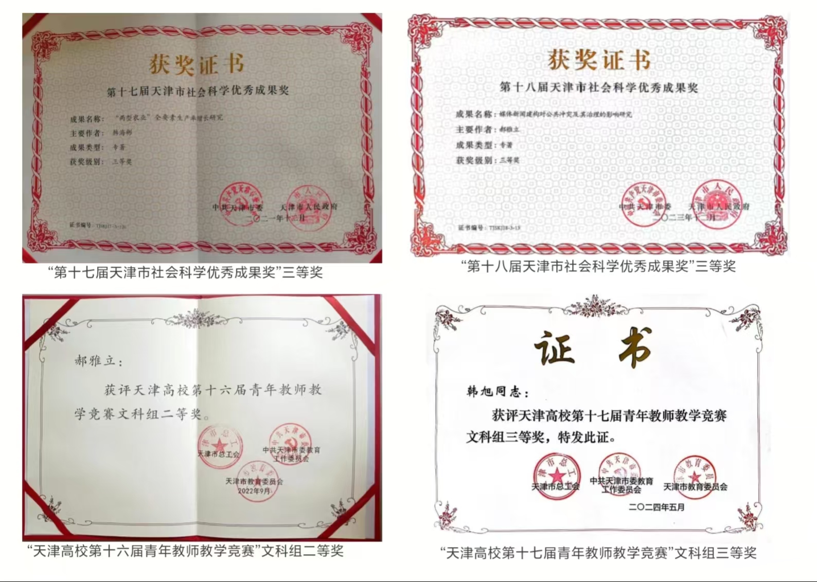 学院教学改革与资源建设取得系列成果:获批天津市级一流本科课程3门;立项市级教学成果重点培育项目1项、天津市级精品教材建设项目1项;获天津市课程思政优秀教学案例1个、天津市大中小学“故事思政”微课大赛普通本科课程思政组三等奖1项,天津市社会科学优秀成果奖三等奖2项;教师在天津市青年教师教学竞赛中取得良好成绩。